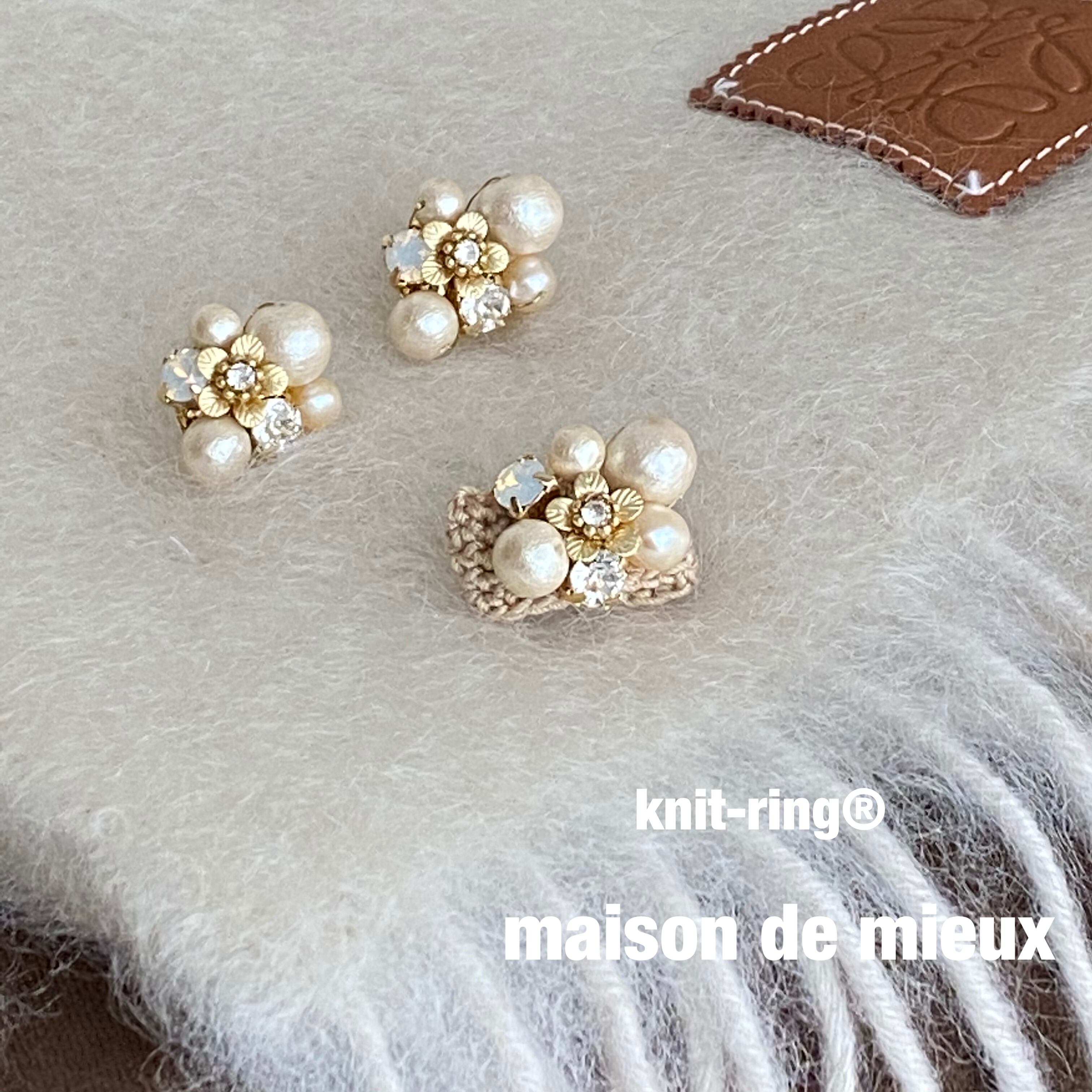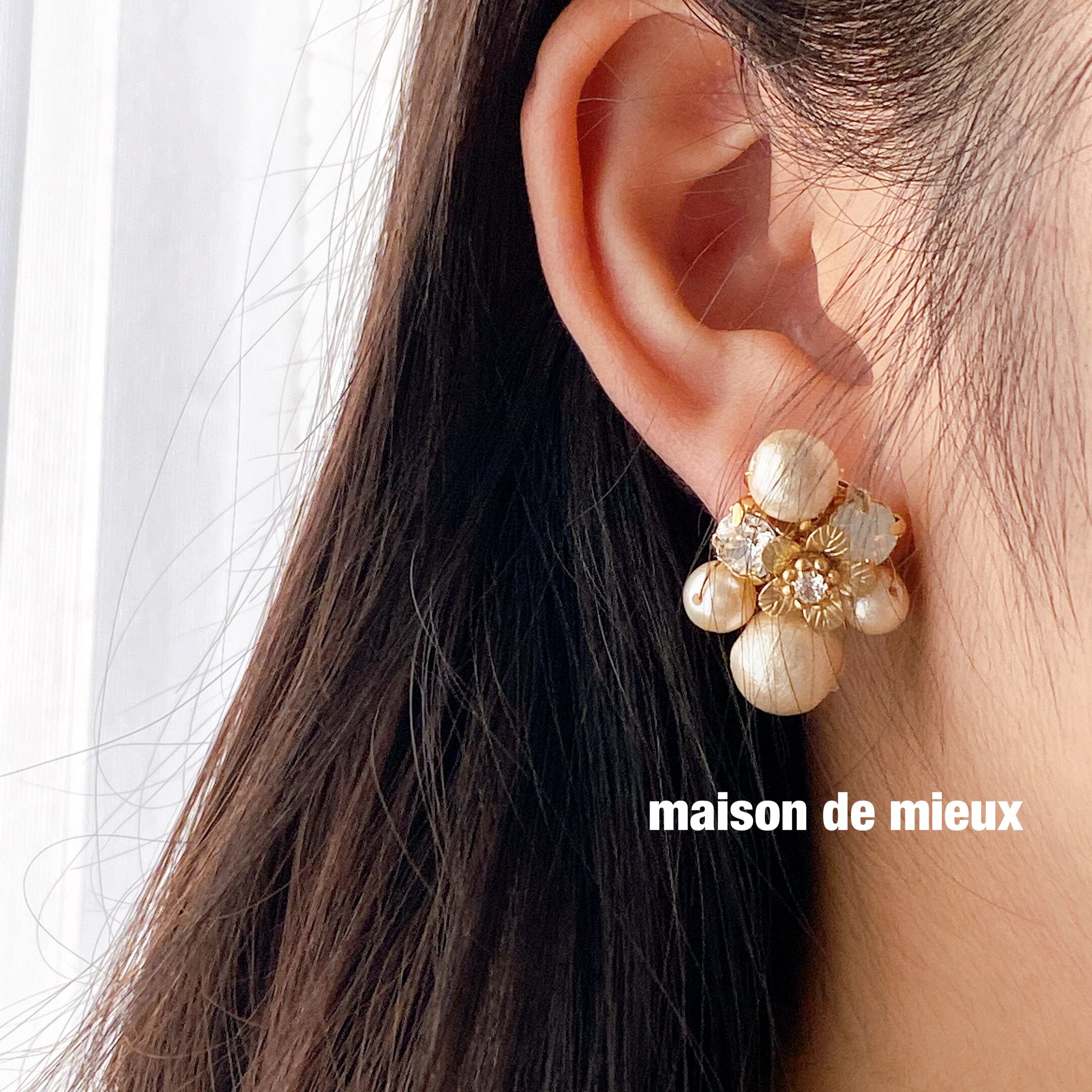 コットンパール、淡水パール、スワロフスキー、フラワーチャームを贅沢にあしらったピアス