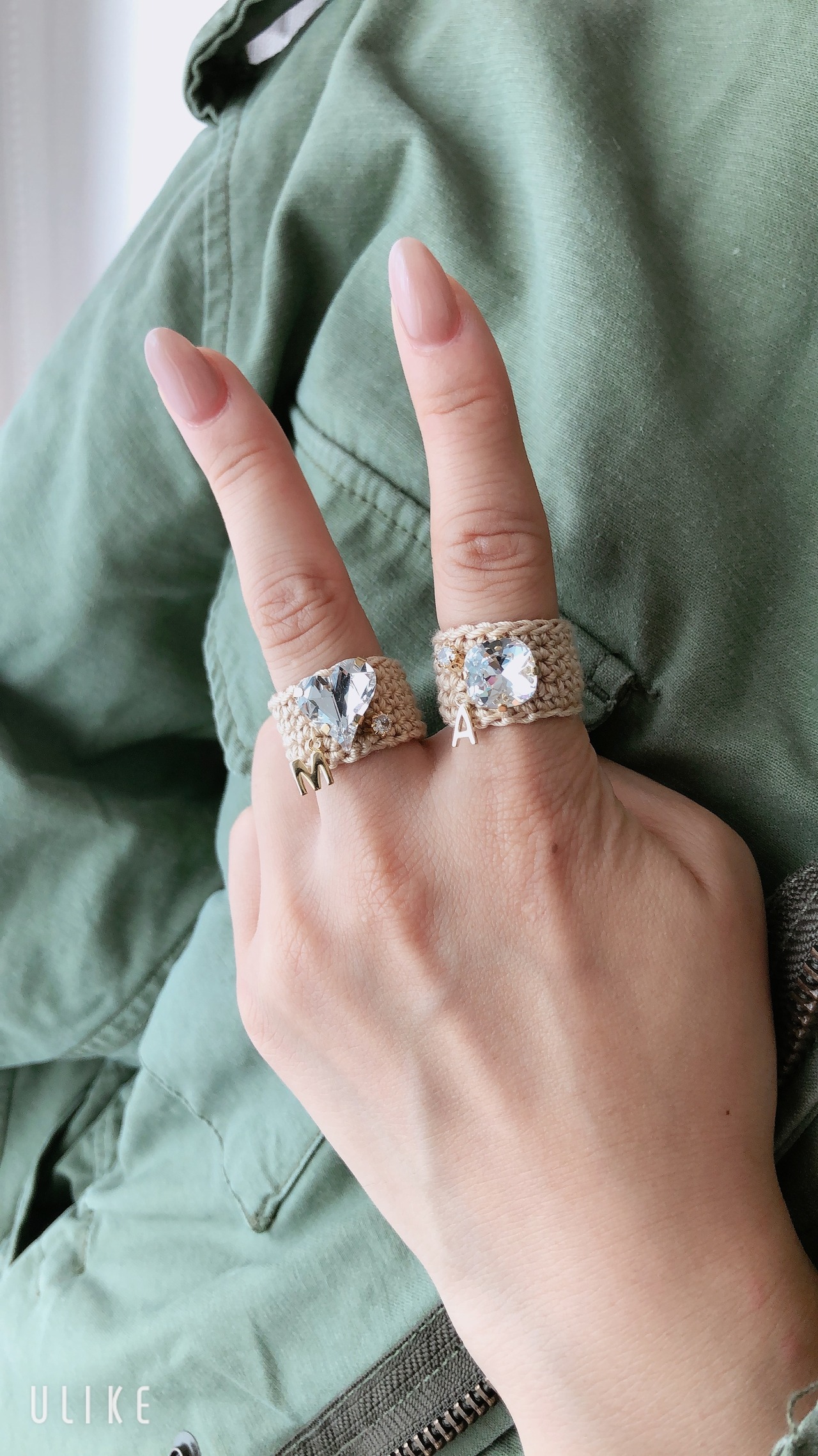 リング部分は金属アレルギーの方も安心してつけていただけるコットン100%の糸を編み上げて作ります。