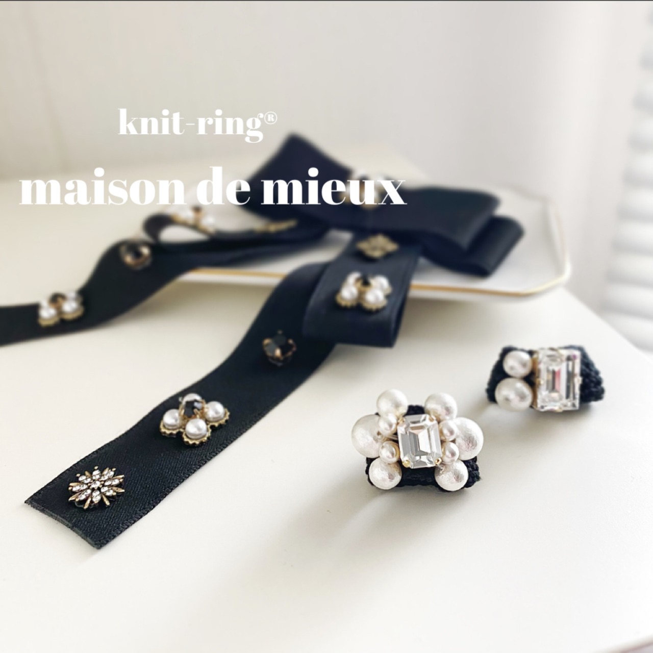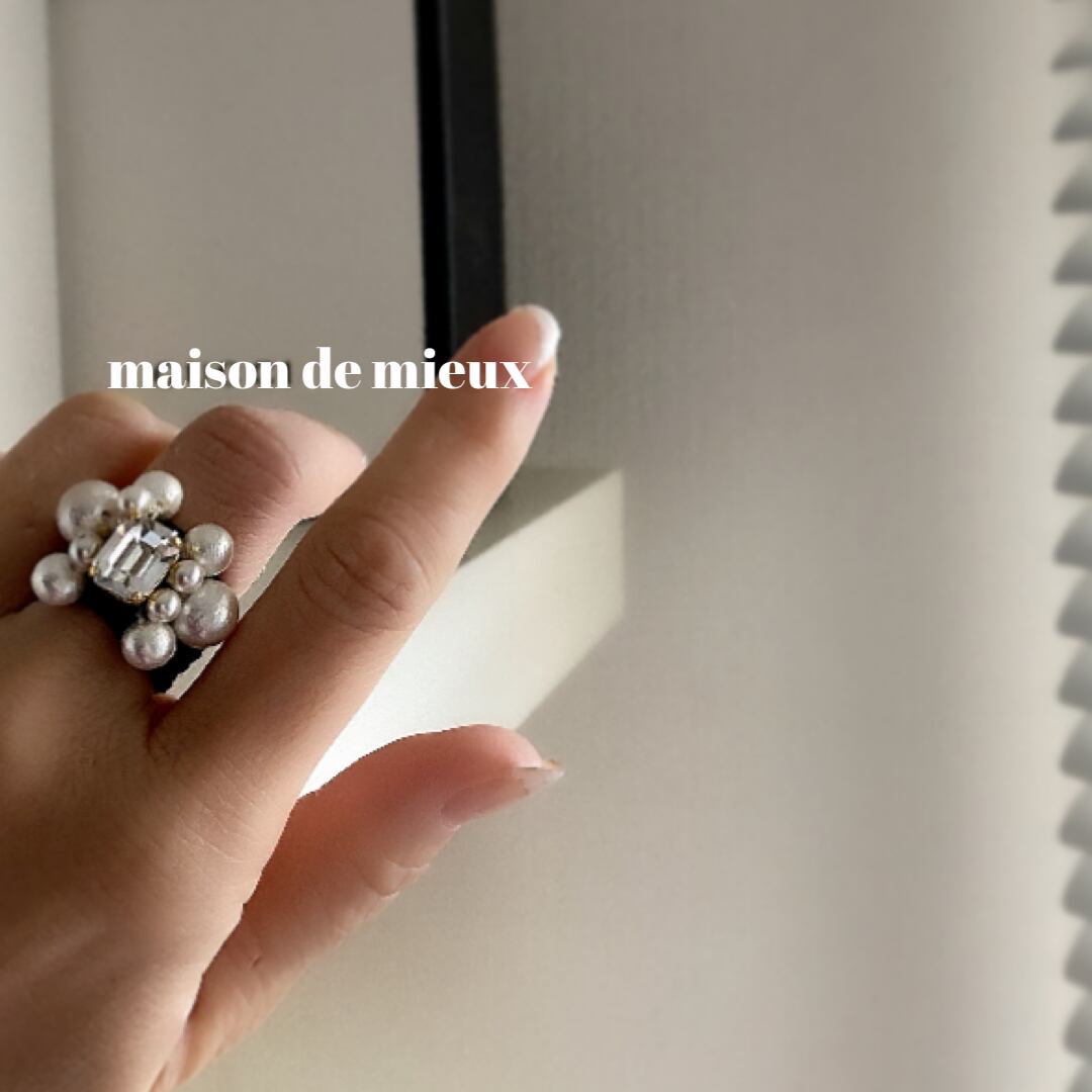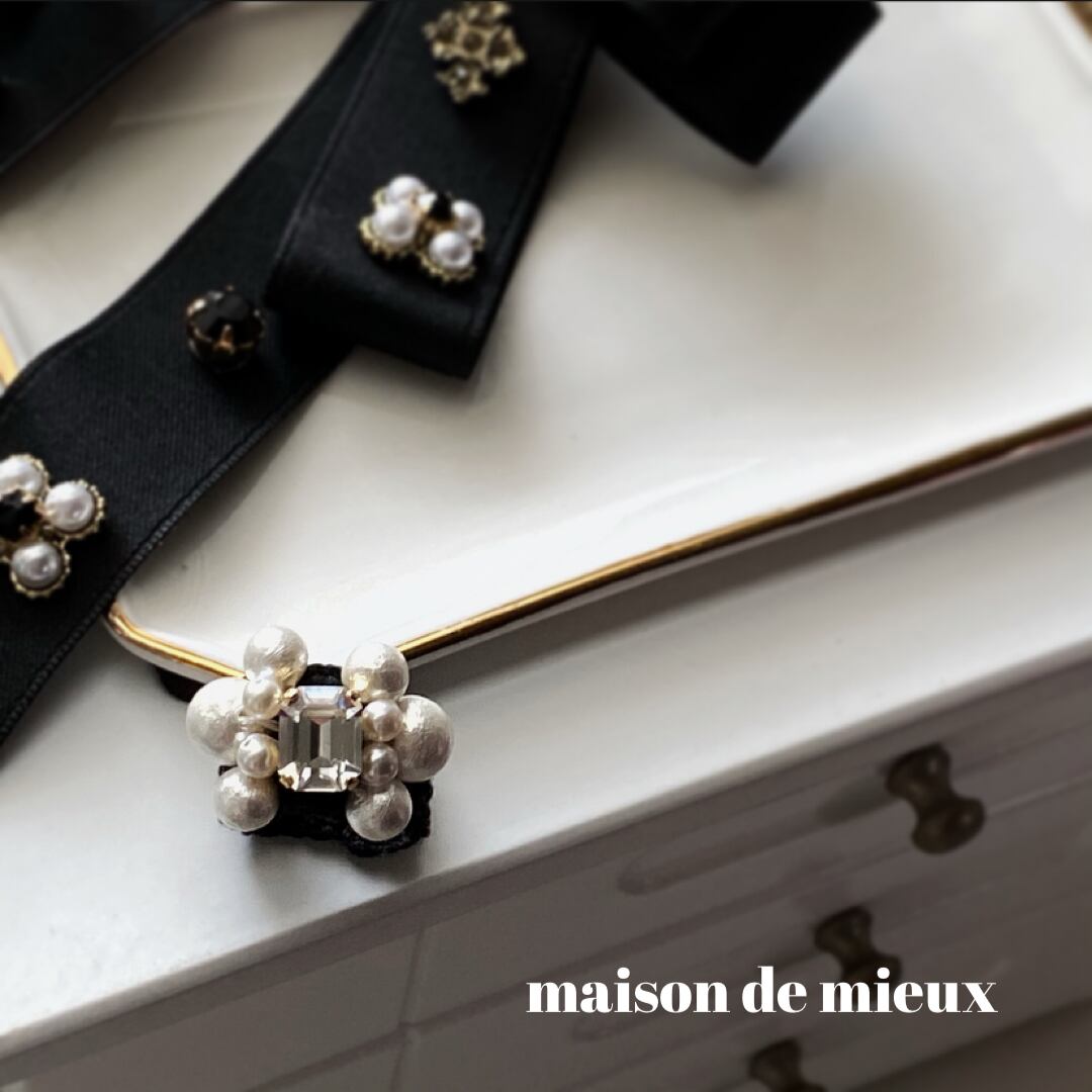 サイズ違いの純白コットンパールとクリスタルのスワロフスキーを合わせて。