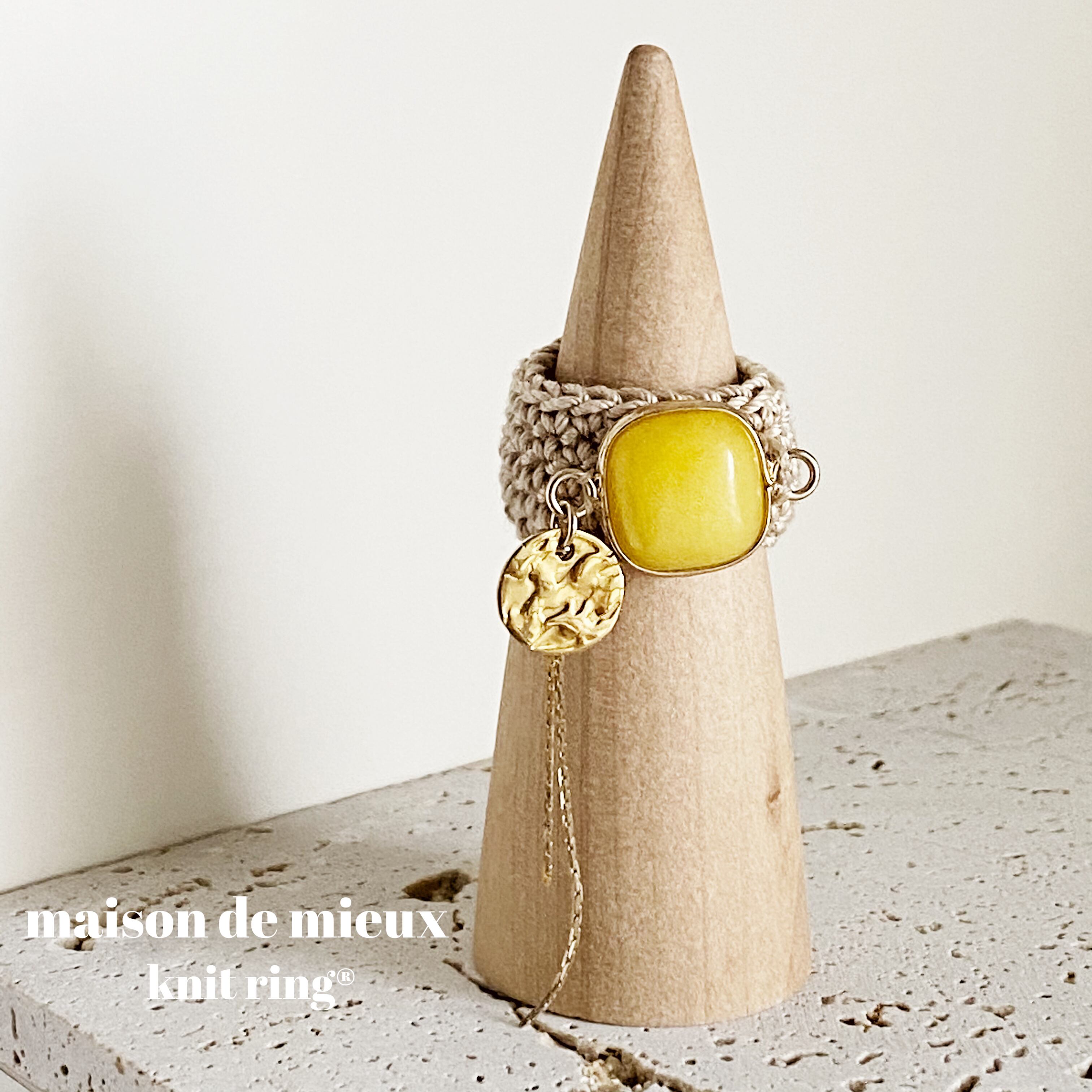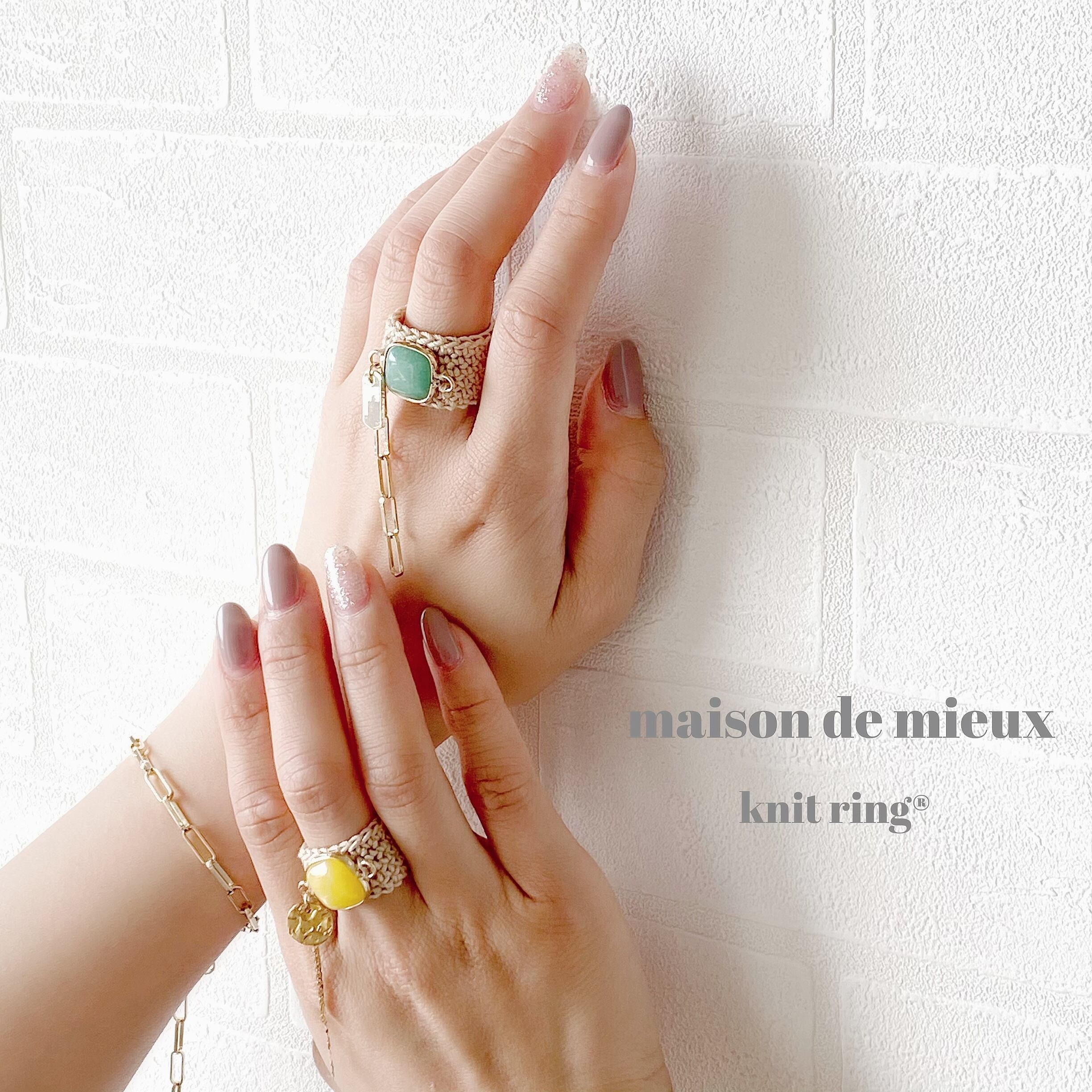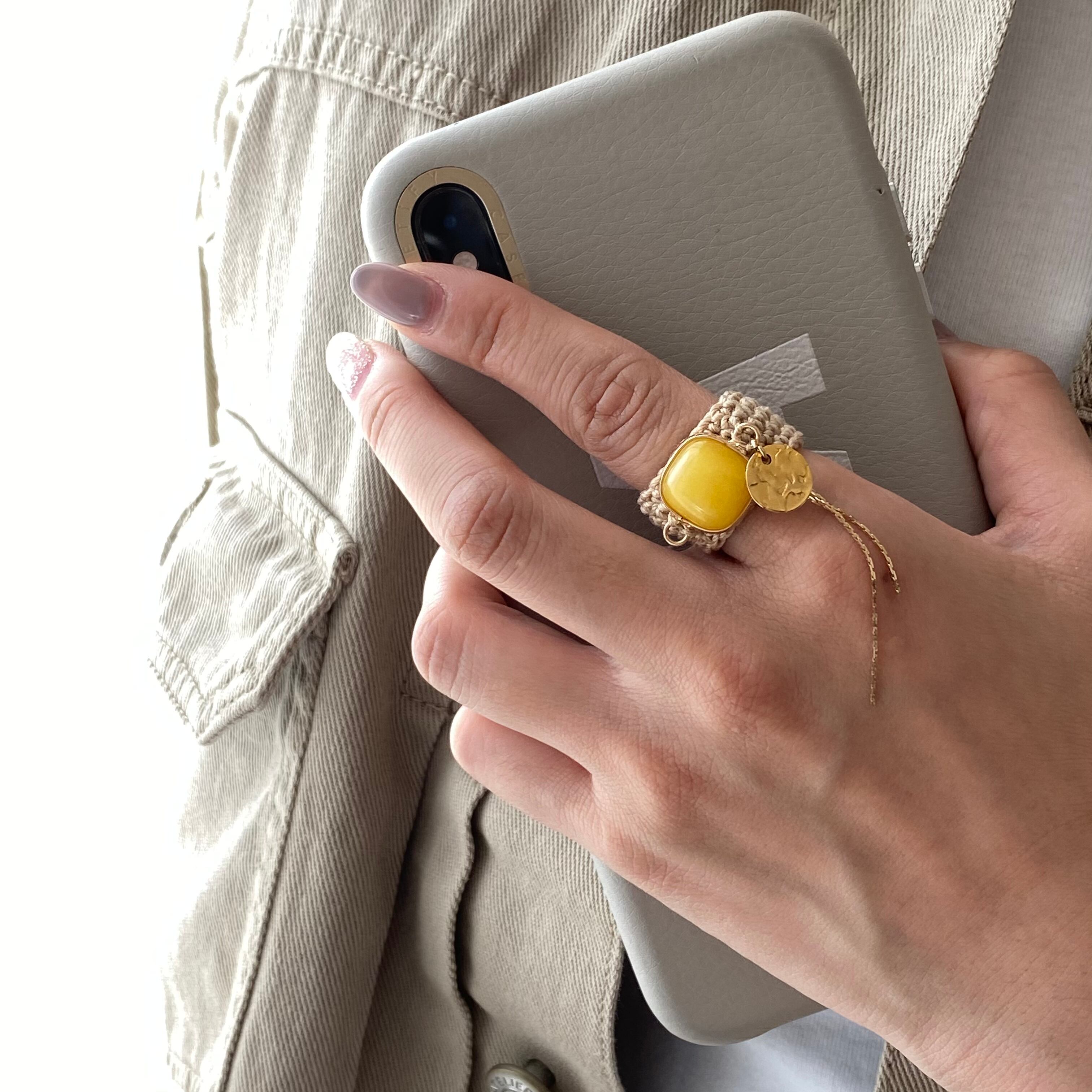 スクエアのカラー天然石とサークルプレートに華奢なチェーンをプラスしたリング
