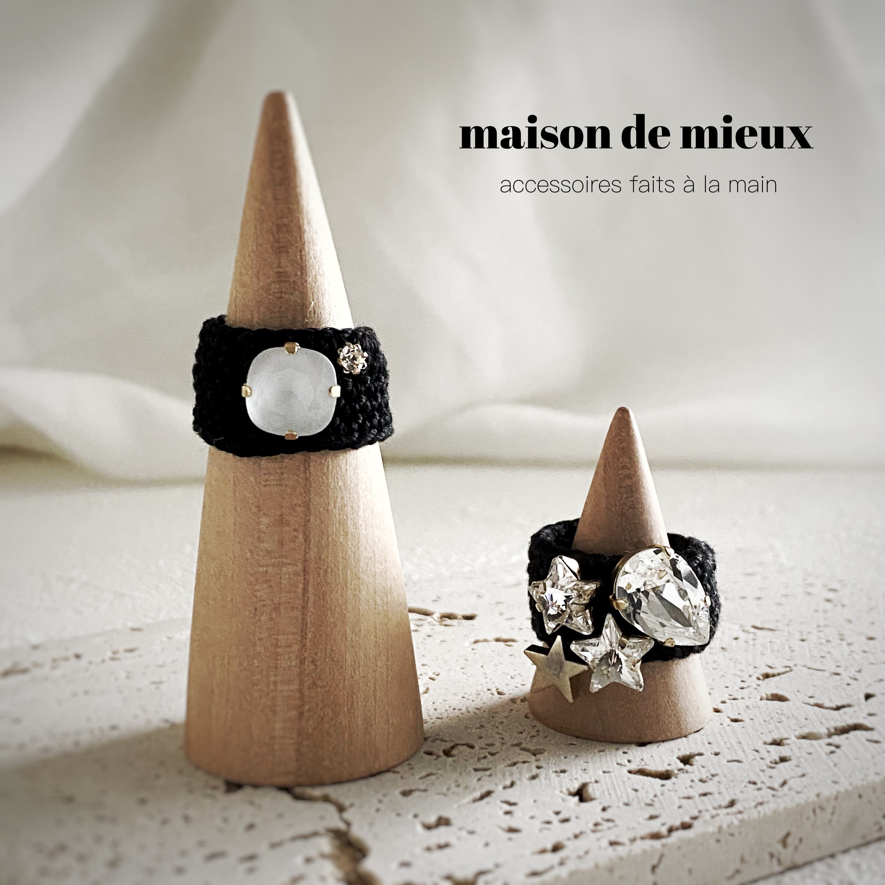 スクエアデザインの氷砂糖のようなスワロフスキーを使用