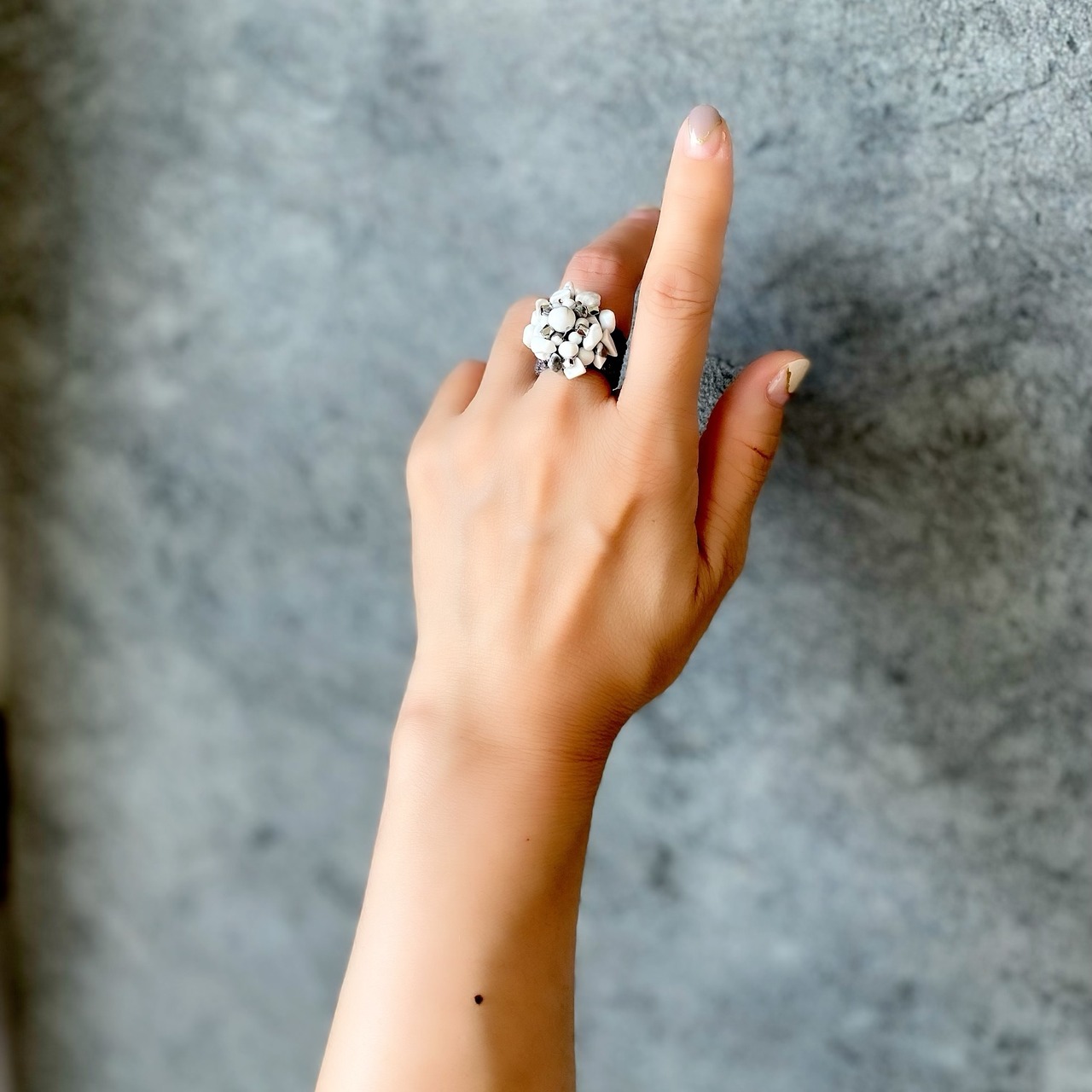 白のリングは指先を華やかに演出してくれます。