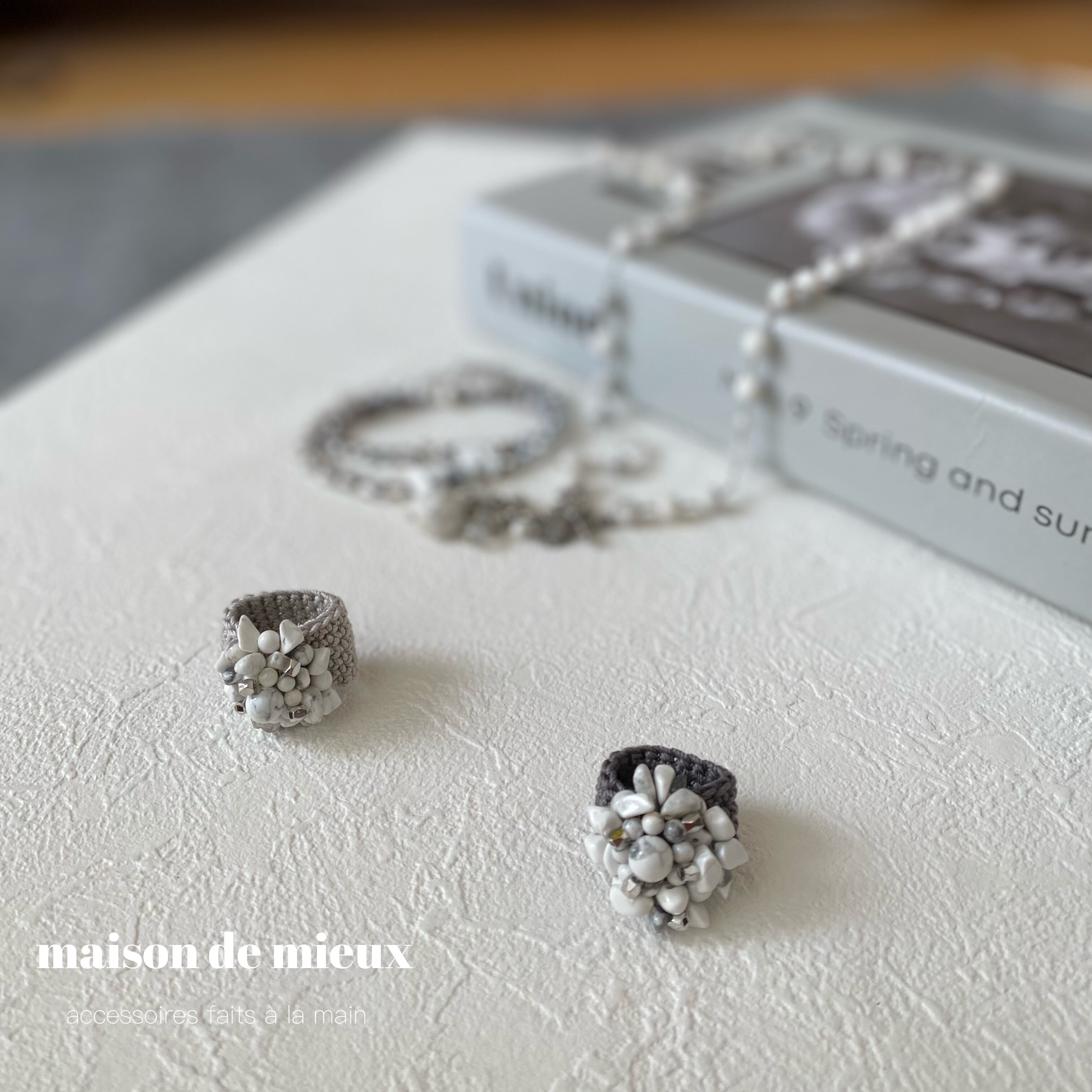 土台のリングはcotton100%の糸で編み上げたニットリング。