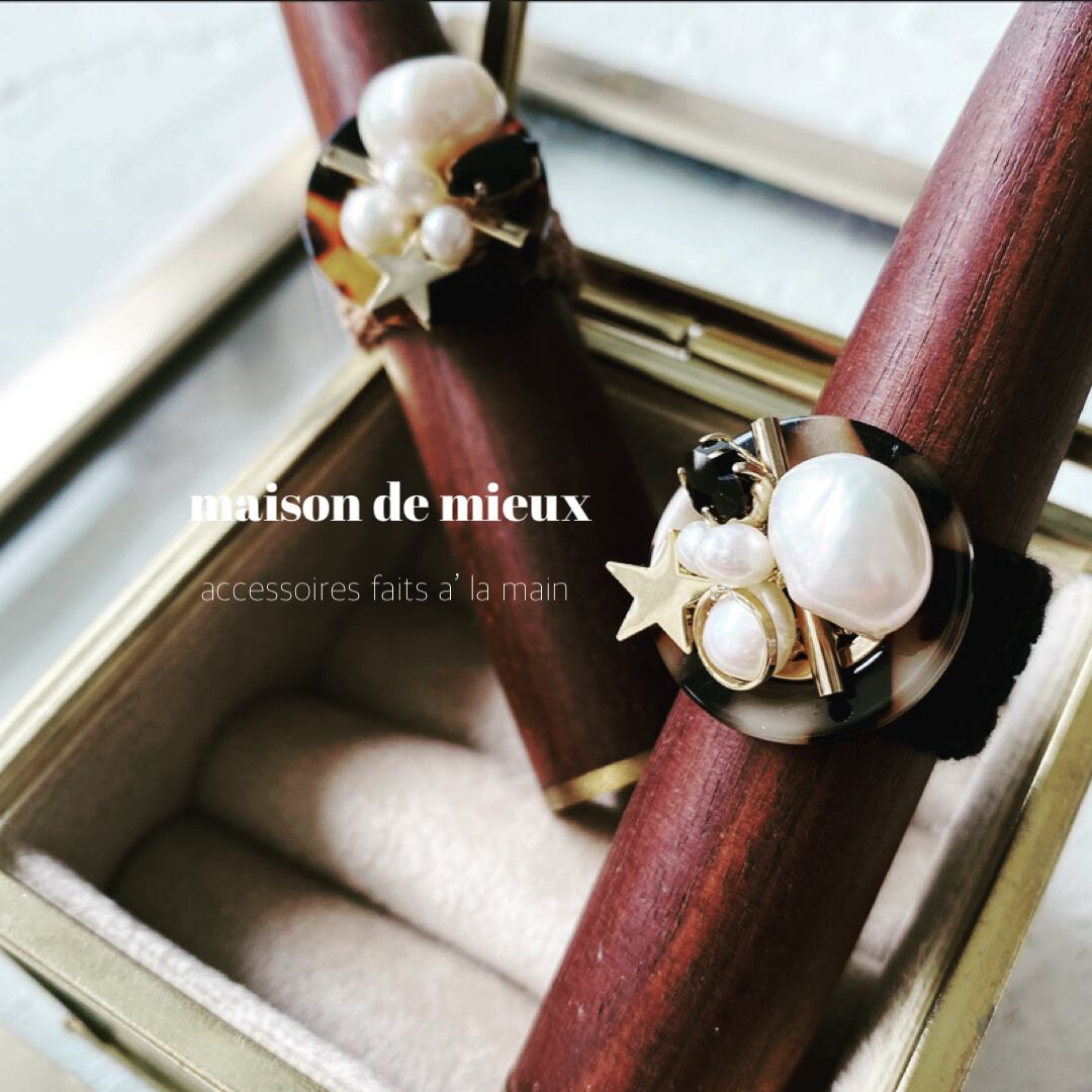 メゾンドミューのニットリングは着けてると指が綺麗に見えると好評です