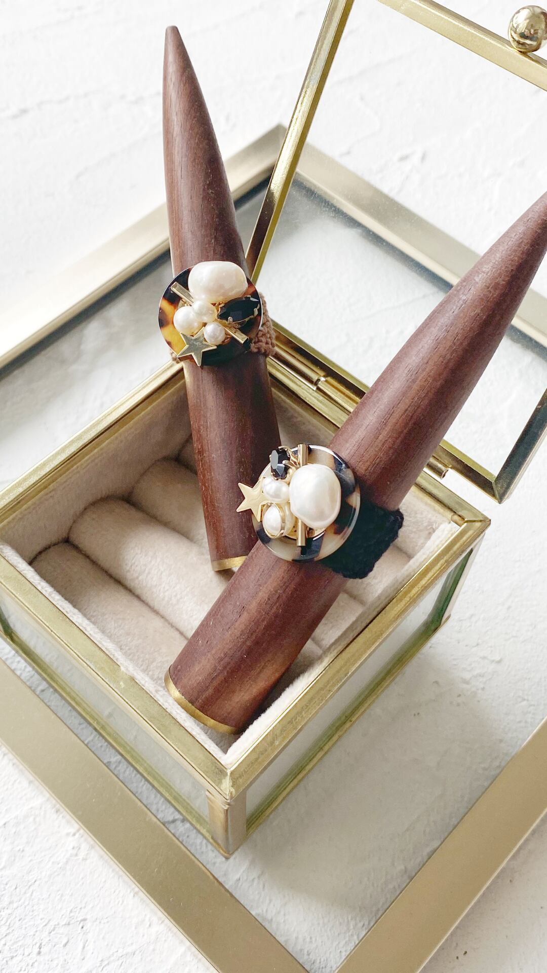 プラスしてくれ立体感のある星チャームやさまざまな種類のパール達をバランスよく重ね合わせました。